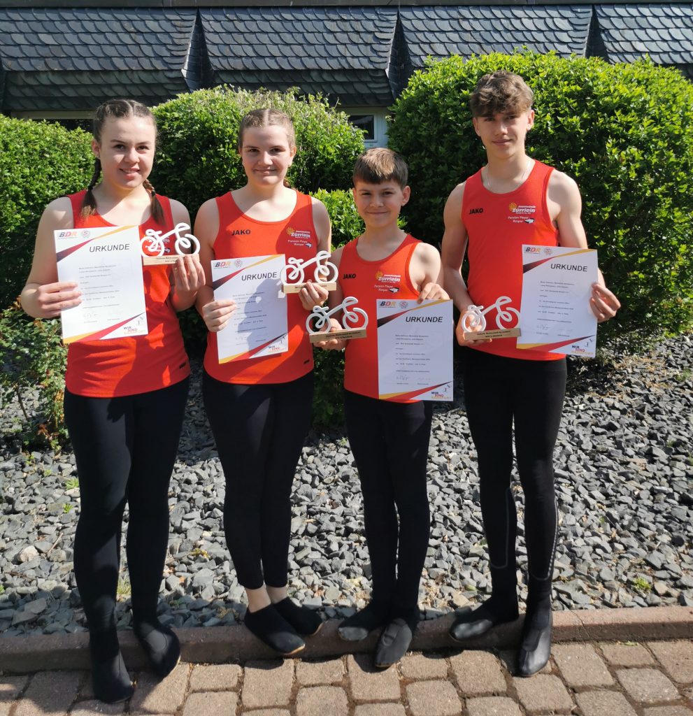 Den krönenden Abschluss bildete der noch neue 4er-Kunstrad mit Lea Sendelbach, Lilly Traub , Marie Hofmann und Marie Zuther – die vier zeigten zum ersten Mal in dieser Disziplin ihr Programm welches sie in kurzer Zeit aus Spaß ausprobierten und fleißig zwischendurch trainierten. Auch wenn das Training oft etwas holprig war, meisterten sie das Programm trotz starker Nervosität, aber voller Konzentration. Ihr Auftritt wurde verdient mit lautem Applaus und dem 1. Platz belohnt. Herzlichen Glückwunsch an alle Sportlerinnen und Sportler! Nun heißt es: gute Erholung in der wohlverdienten Sommerpause – und weiterhin fleißiges Training, damit wir uns im Herbst genauso stark zurückmelden.